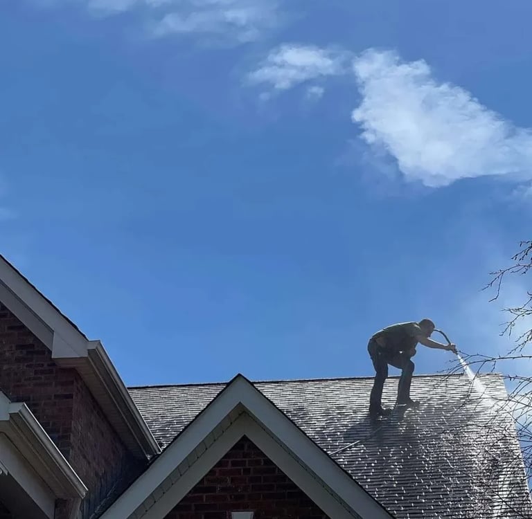 Roof soft washing and roof pressure washing is a deep clean of your roof that can remove moss, lichen, and algae, improving the appearance and extending the lifespan of your roof. Manhattan, KS homeowners, we offer professional roof soft washing and roof pressure washing services to keep your roof looking clean and well maintained all year round.